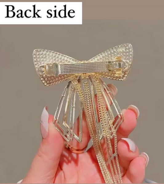 Rhinestone formal bow metallic clip with tassel hangings