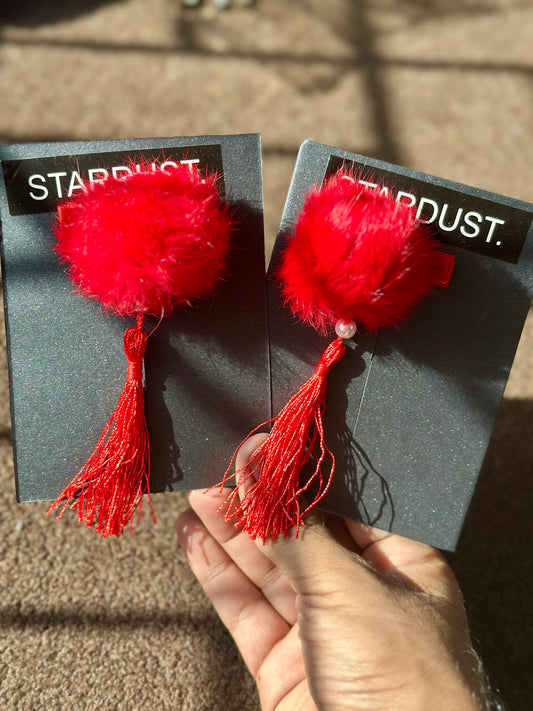 RED Pom Pom Clipons Pair🔥